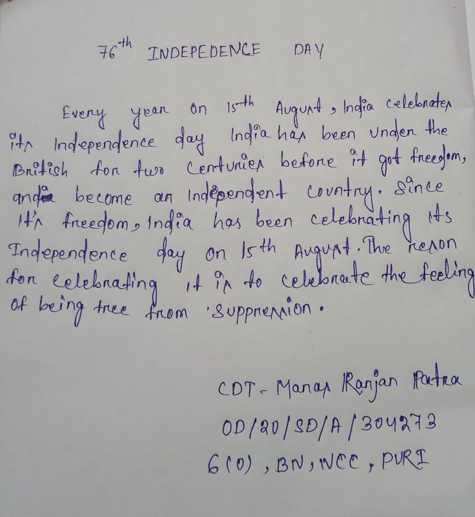 I am Priyanshu Khan cadet of 14 Bengal BN NCC. My regimemtal number is WB22JDA189423