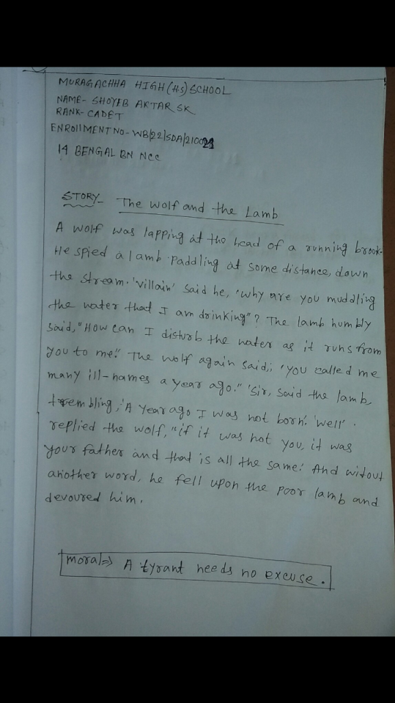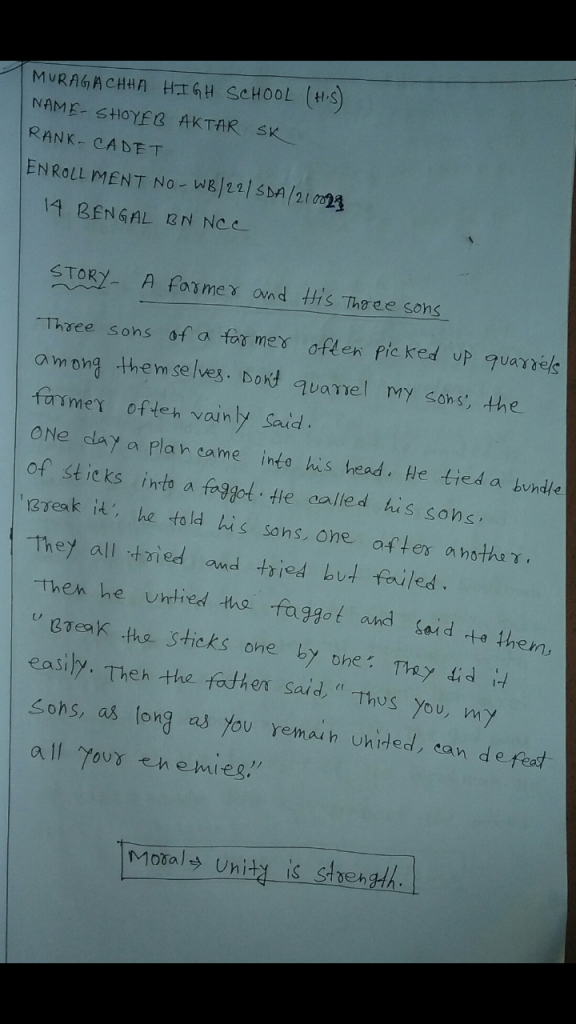 Name-Shoyeb Aktar Sk /Enrolment no- wb22sda210021/ 14 Bengal Bn Ncc