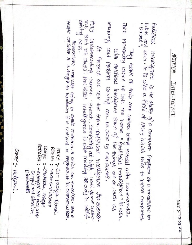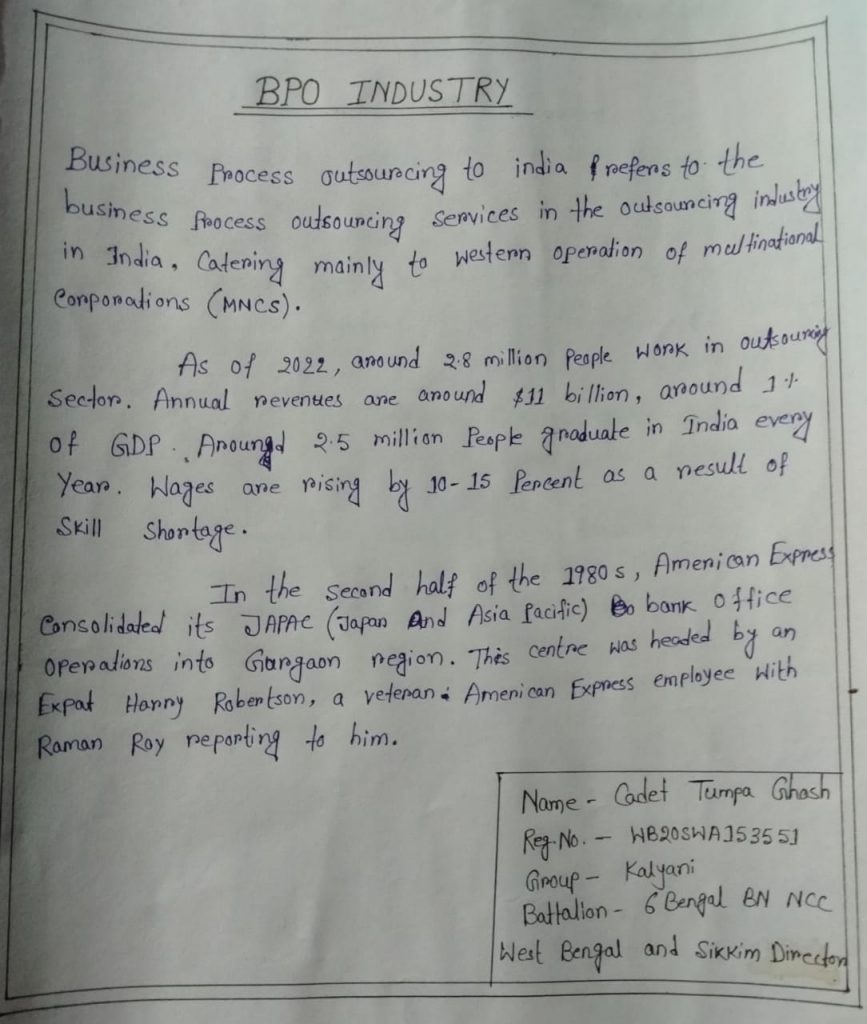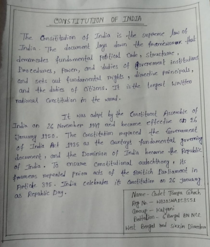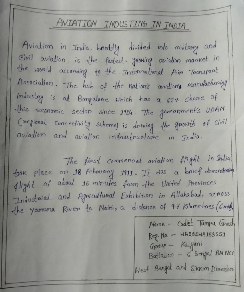 Name :-Cdt Papiya Barai Reg No :- WB20SWA 153567 College Name :- Chakdaha college Battalion :- 6 Bengal BN NCC West Bengal and Sikkim Directors Group :- Kalyani
