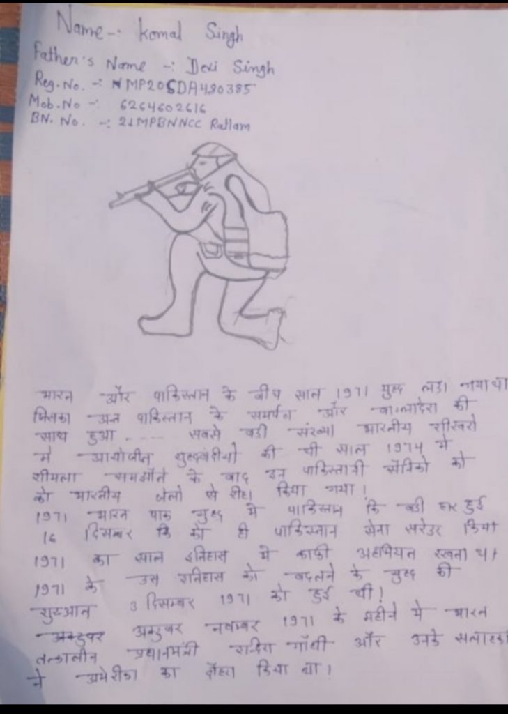 I am Cadet Oishiki Chatterjee, reg. no. OD/21/SW/A/304647 of Kalinga Institute of Industrial Technology (Deemed to be University). I belong to 6(O) Bn. NCC Puri unit, Behrampur group of Odisha Directorate.