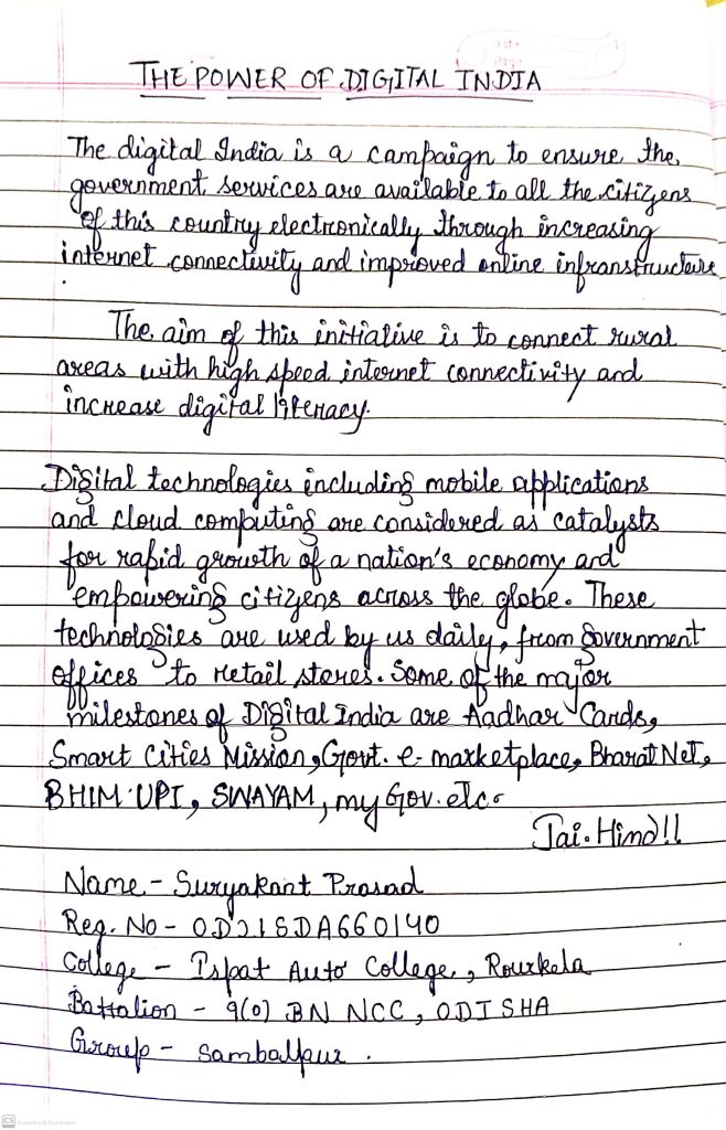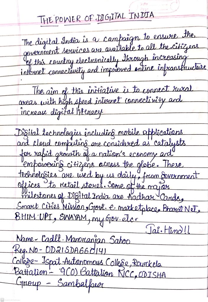Cdt Manoranjan sahoo Regt No- OD21SDA660141 ISPAT AUTONOMOUS COLLEGE, ROURKELA