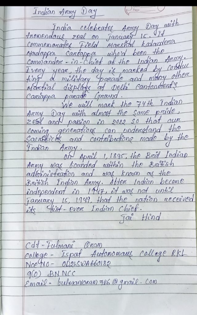 CDT- Fulmani Oram College-Ispat autonomous college Rourkela NCC no- OD21SWA660182 9(O)BNNCC