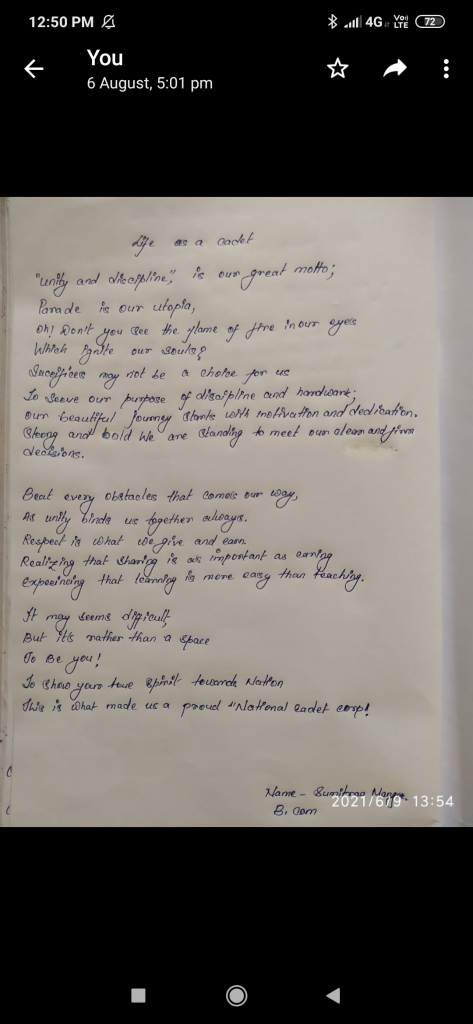I CDT Avantika Madhav Kuber My regimental number is 584402 6 MAHARASHTRA GIRLS BN NCC KOP Vivekanand college kolhapur