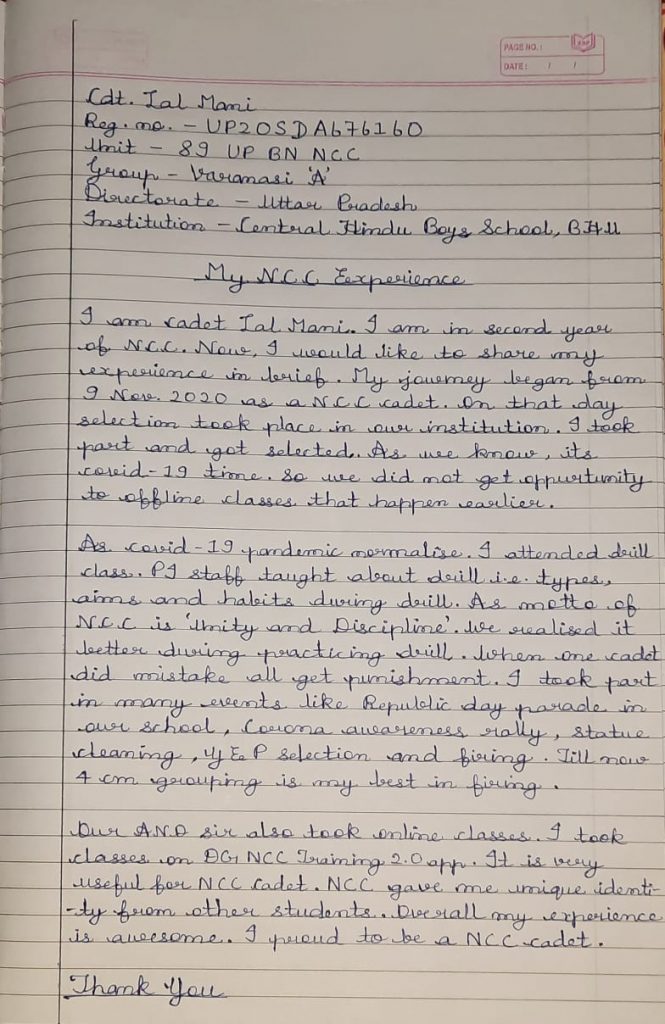 I am Cadet Soumita Roy from 5bn Girls Battalion