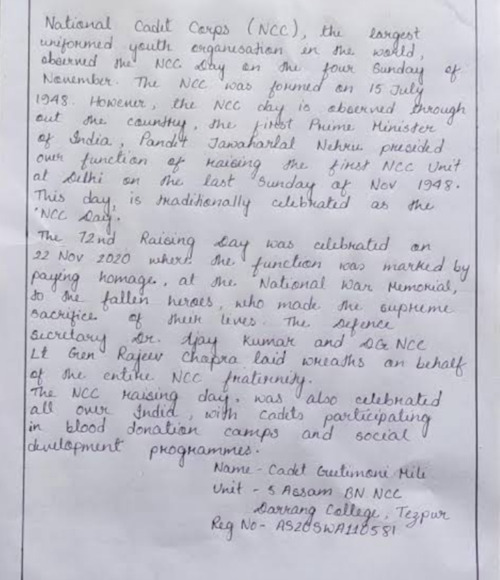 CDT Dimpi Karjee , KAR/20/SW/A/265060,1 KAR ARMD SQN NCC TP-3 BLORE B GP, St Joseph's College