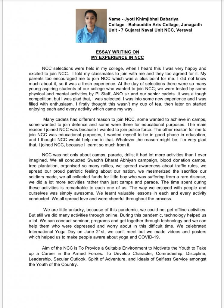 CDT Jyoti Babriya, from 27 GUJ BN, Jamnagar group shared her experience in NCC