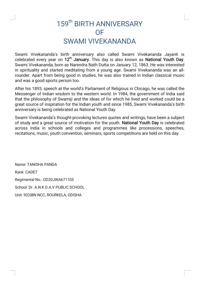 Rank :- Cadet Name:- Dibyashree Mahakul REGIMENTAL NUMBER :- OD20JW671092 Institution name :- Dr. A.N.K D.A.V PUBLIC SCHOOL, ROURKELA Unit :- 9(O)BN NCC, Rourkela Odisha Dt - 12 January 2022
