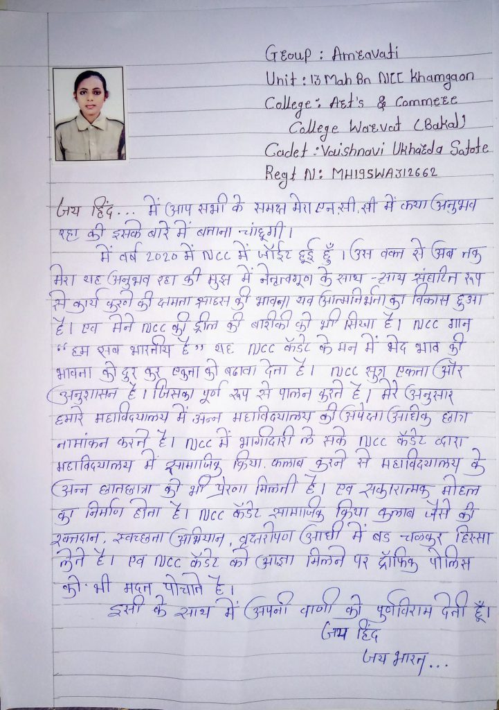 I myself, MK NAVYA SRI; Cadet of NCC. I feel it is my responsibility to create awareness about importance of water in our life and to every living being and need to conserve it for future generations