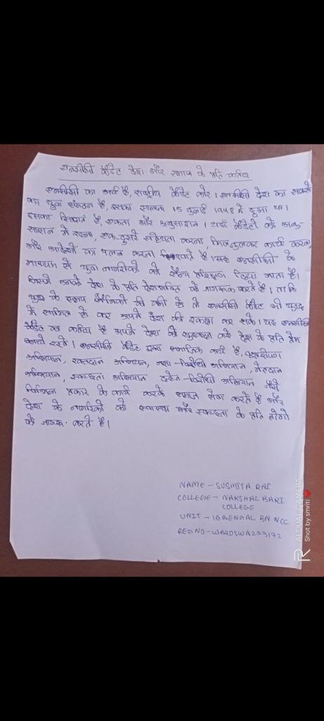 WB21SWA214392 Cadet Sandhya Sharma Nakshalbari college 'F' Coy 16 Bengal BN NCC Darjeeling group WB&SK Dte