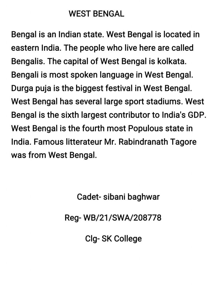 16 Bangal BN NCC, College:-NAKSHAL BARI COLLEGE,\'F\'COY, Reg no:-WB21SDA214401,Rank:-CADET,Name:-Niranjan Goswami