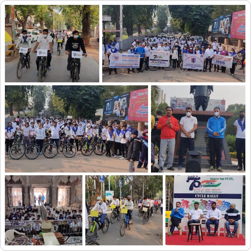The Independence Day Amrut Mahotsav was organized by the NCC and NSS students of our college on the 75th anniversary of Independence through a cycle rally.