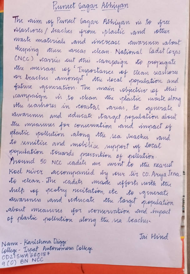OD21SWA660187 CDT.KARISHMA DIGGI 9(O)BN NCC ISPAT AUTO COLLEGE