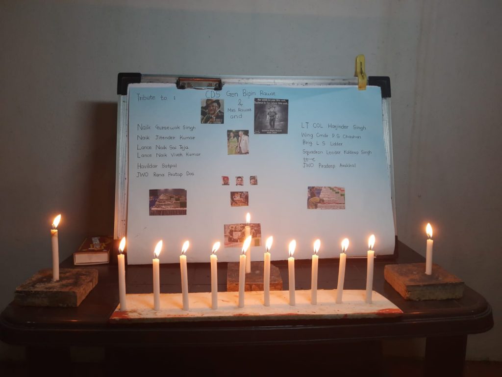 NCC Junior Wing Cadet giving tribute to General Bipin Rawat and 12 others who died in the helicopter crash