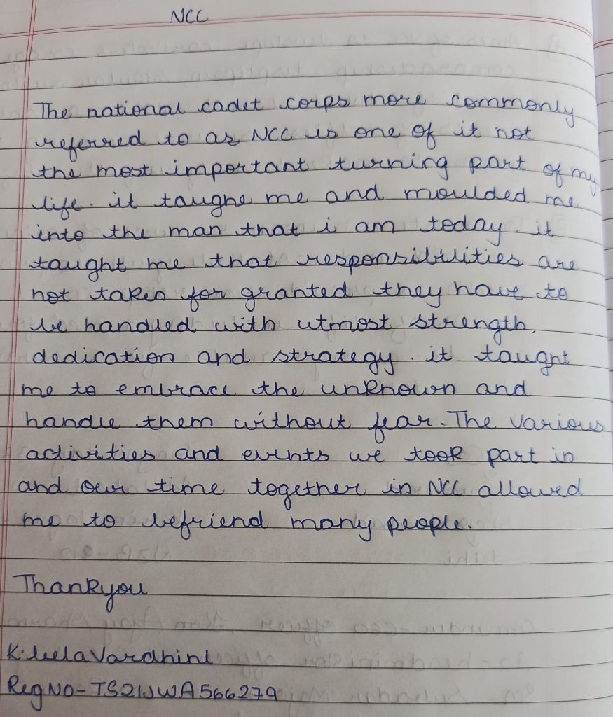 Unit:1Mah Naval Unit NCC Cadet ILINA RAJESH DHAMAGAYE,From Institute Kendriya Vidyalaya no 2 Colaba Mumbai Maharashtra. Participated in Creative writing on topic "Unsung Heroes of the Armed Forces"for the week 2-8.8.21.Jaihind ??