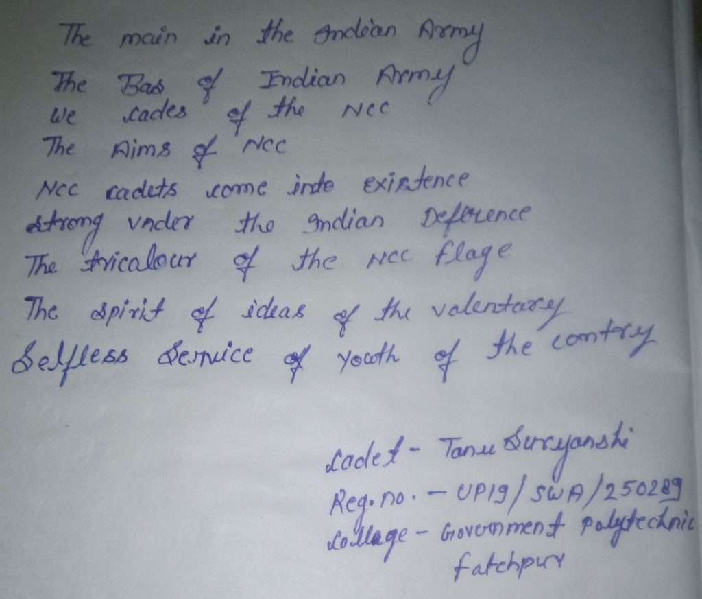 DEVIKA KRISHNAN CADET NO KL20JWA152722 NSS GIRLS HIGH SCHOOL PANDALAM 5 KERALA GIRLS BATTALION NCC CHANGANASSERY