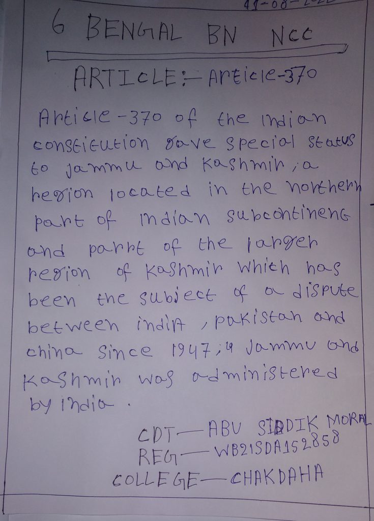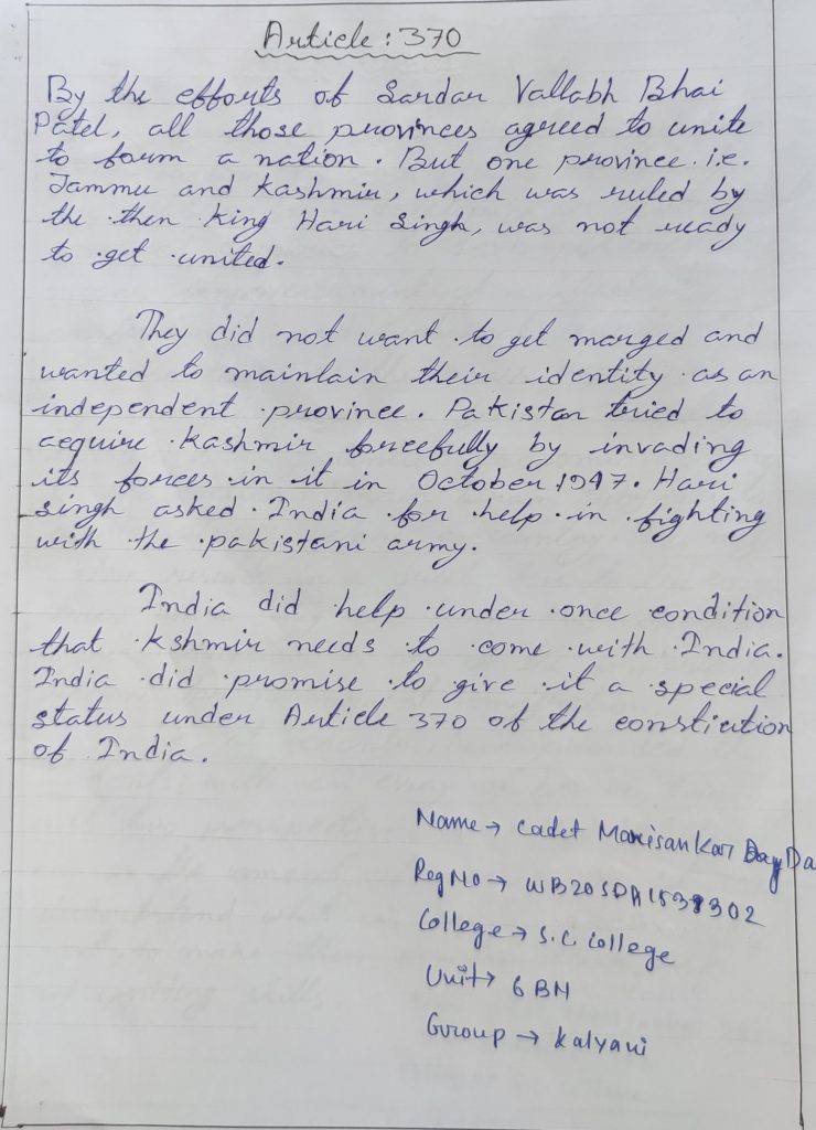 WB21SWA153068; CDT ARNABI DAS, DB COLLEGE, UNDER 6 BENGAL BATTALION