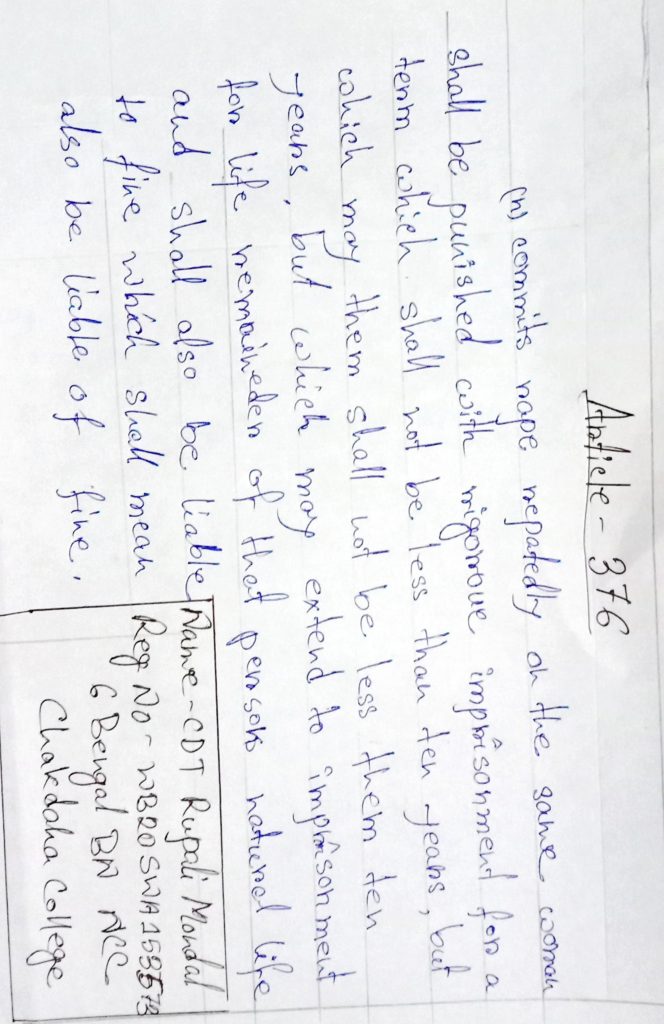 Name CDT RUPALI MONDAL Reg No WB2SWA153573 6Bengal B. N. NCC Chakdaha College