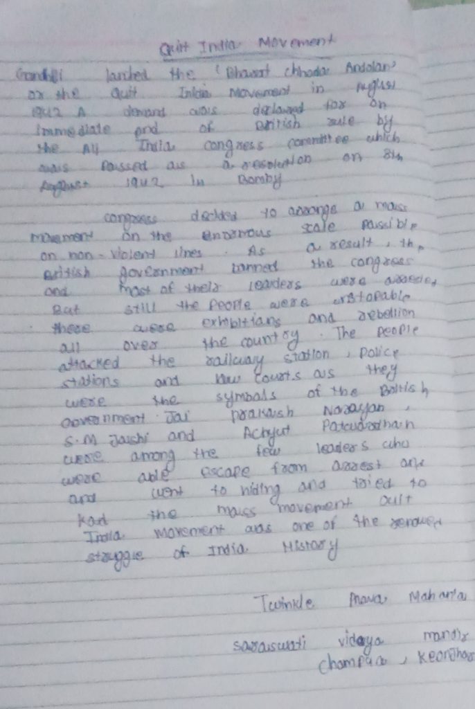 Quit India movement Saraswati vidya mandir champua, keonjhar