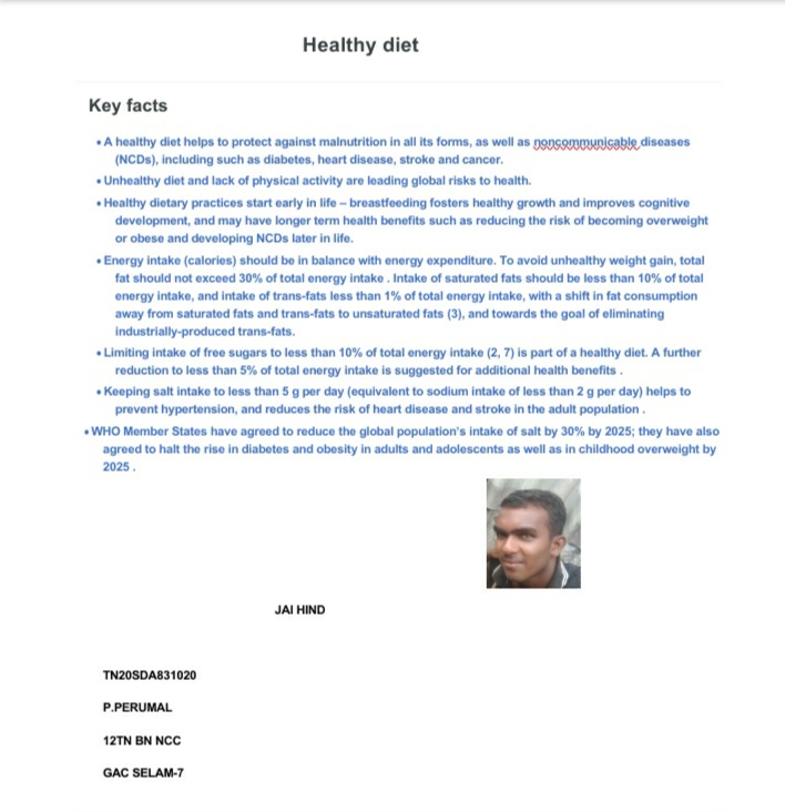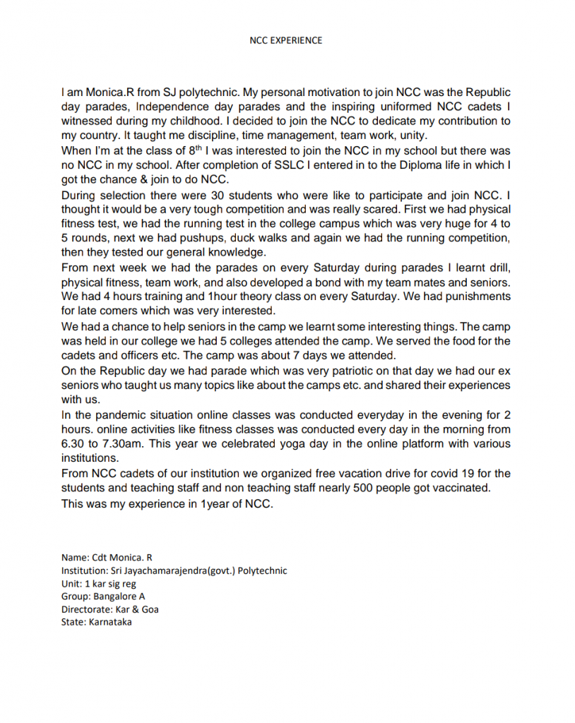 chinmayee.Pradeep from class9th.NCC cadet from Sree Cauvery school institution