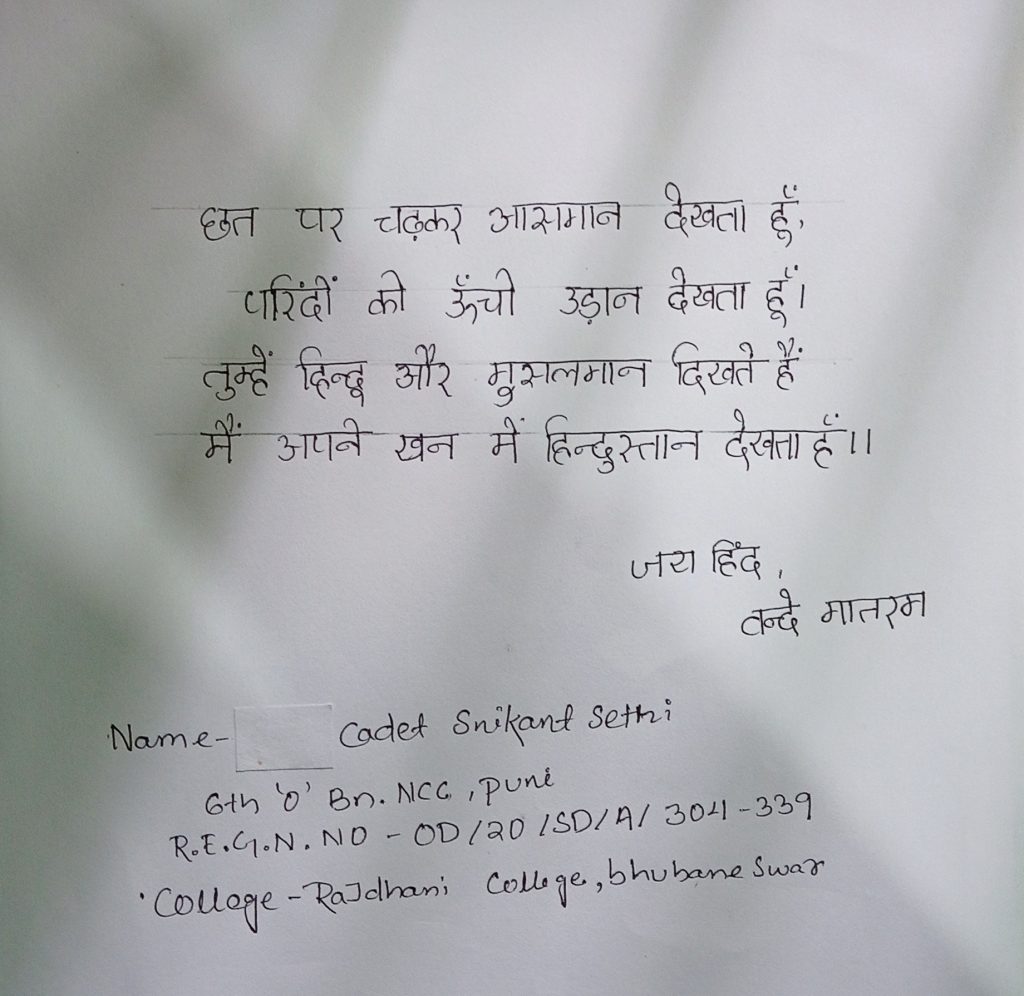 L CPL AJIT KUMAR MISHRA REG: OD/20/SD/A/304-327 RAJDHANI COLLEGE BHUBANERSWAR 6(O)BN NCC PURI
