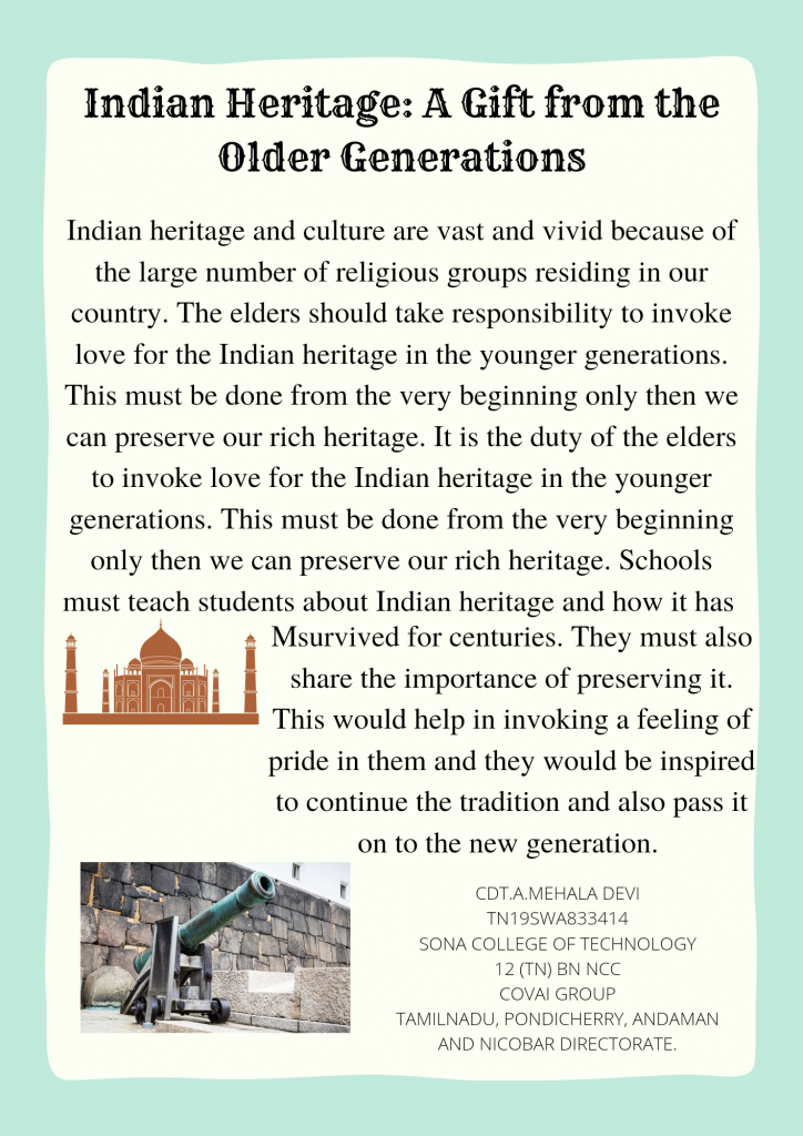 CDT.A.MEHALA DEVI TN19SWA833414 SONA COLLEGE OF TECHNOLOGY 12 (TN) BN NCC COVAI GROUP TAMILNADU, PONDICHERRY, ANDAMAN AND NICOBAR DIRECTORATE.