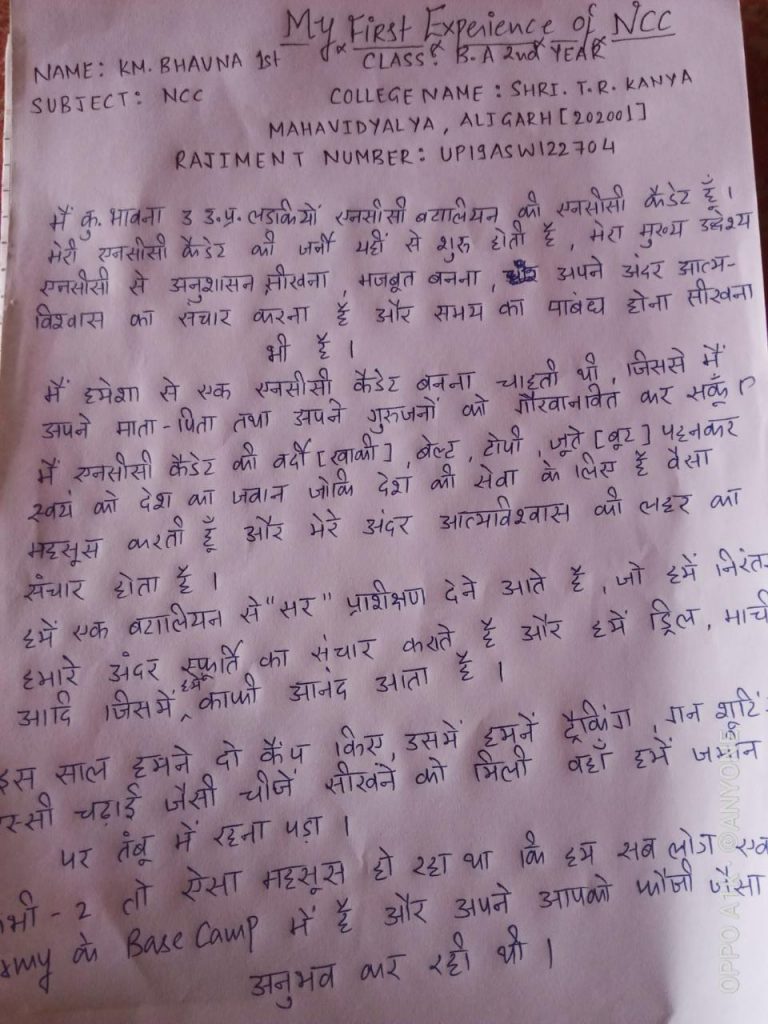My self Cdt Rashmitha Kumari, from 1(T) Arty Bty NCC Hyderabad group. Being a sports enthusiast I am honored to be part of largest uniformed youth organisation and proud to be an NCC cadet?
