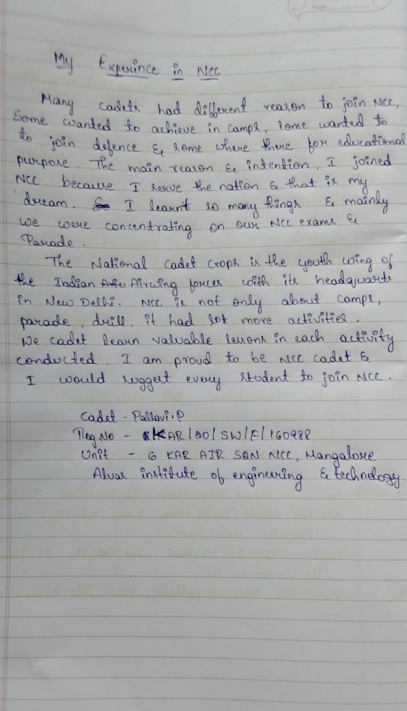 I am cadet pallavi p from 6 KAR AIR SQN NCC , Mangalore. My regimental number is KAR/20/SW/F/160988. I shared my experience in NCC.