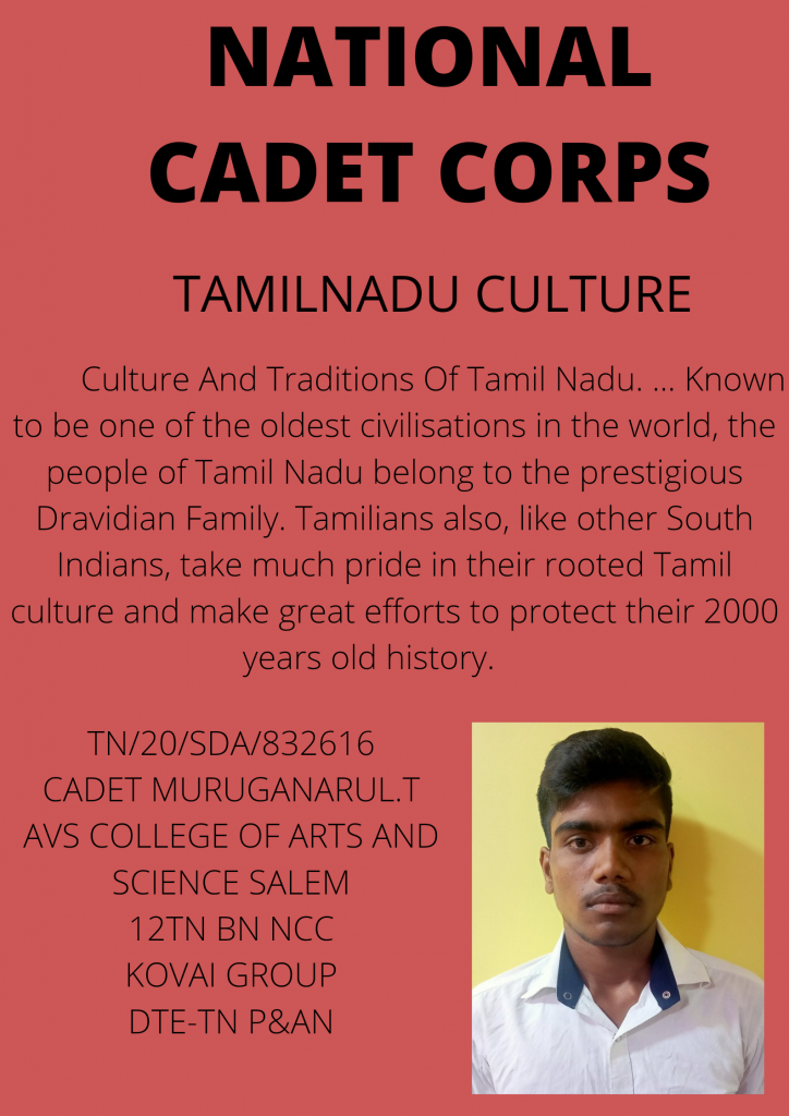 TN/20/SDA/832616 CADET MURUGANARUL.T AVS COLLEGE OF ARTS AND SCIENCE 12TN BN NCC COVAI GROUP DTE-TN P &AN