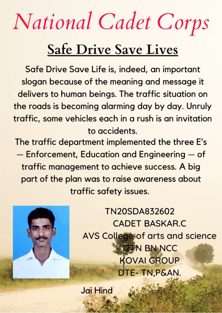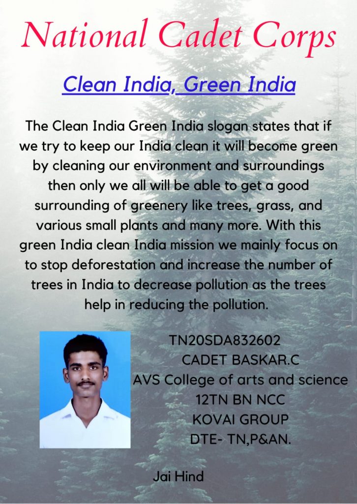 TN 20 SDA 832602 CADET BASKAR.C AVS COLLEGE OF ARTS AND SCIENCE, SALEM TN 12 BN NCC KOVAI GROUP DTE-P&AN