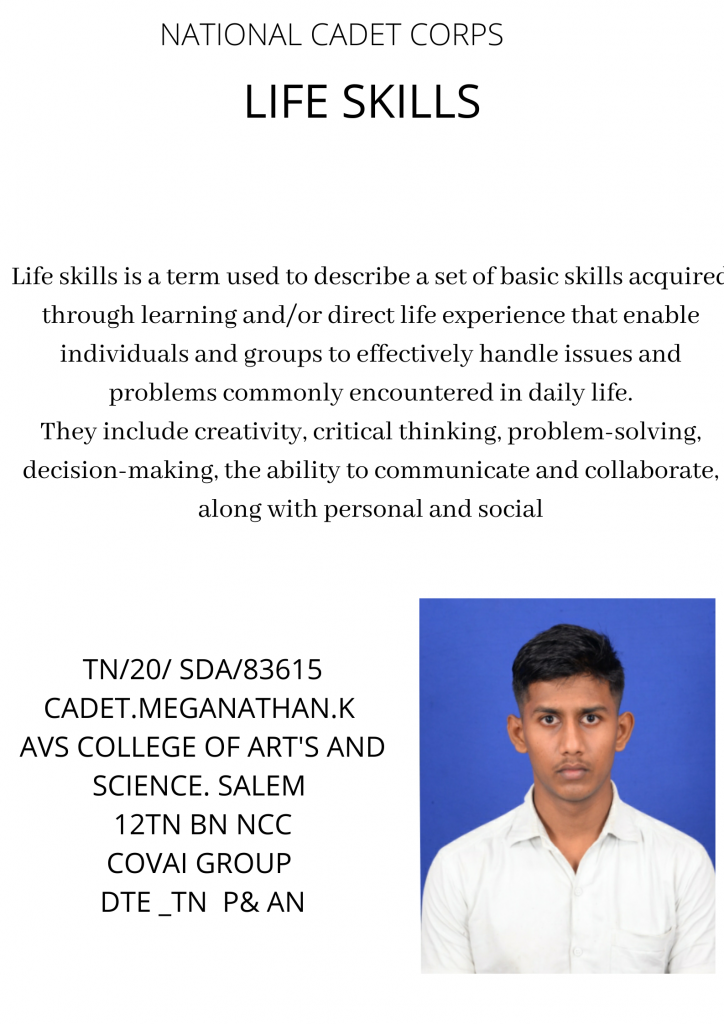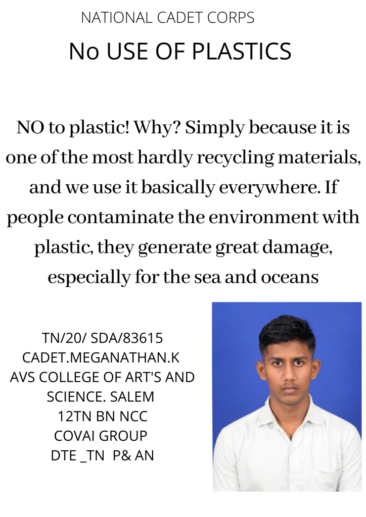 TN 20 SDA 8326 CADET. MEGANATHAN.K AVS COLLEGE OF ART'S AND SCIENCE. SALEM 12 TN BN NCC COVAI GROUP DTE _ TN P &AN