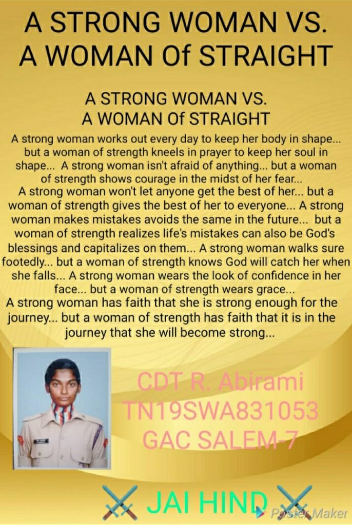 CDT R ABIRAMI TN19SWA831053 GAC SALEM -7 12 TN BN NCC KOVAI GROUP TN AND BN DR