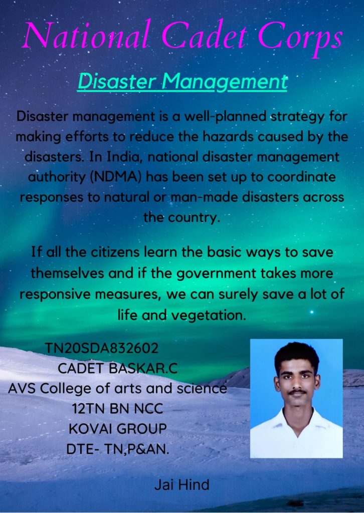 TN20SDA832602 CADET BASKAR.C AVS COLLEGE OF ARTS AND SCIENCE, SALEM TN 12 BN NCC KOVAI GROUP DTE-P&AN