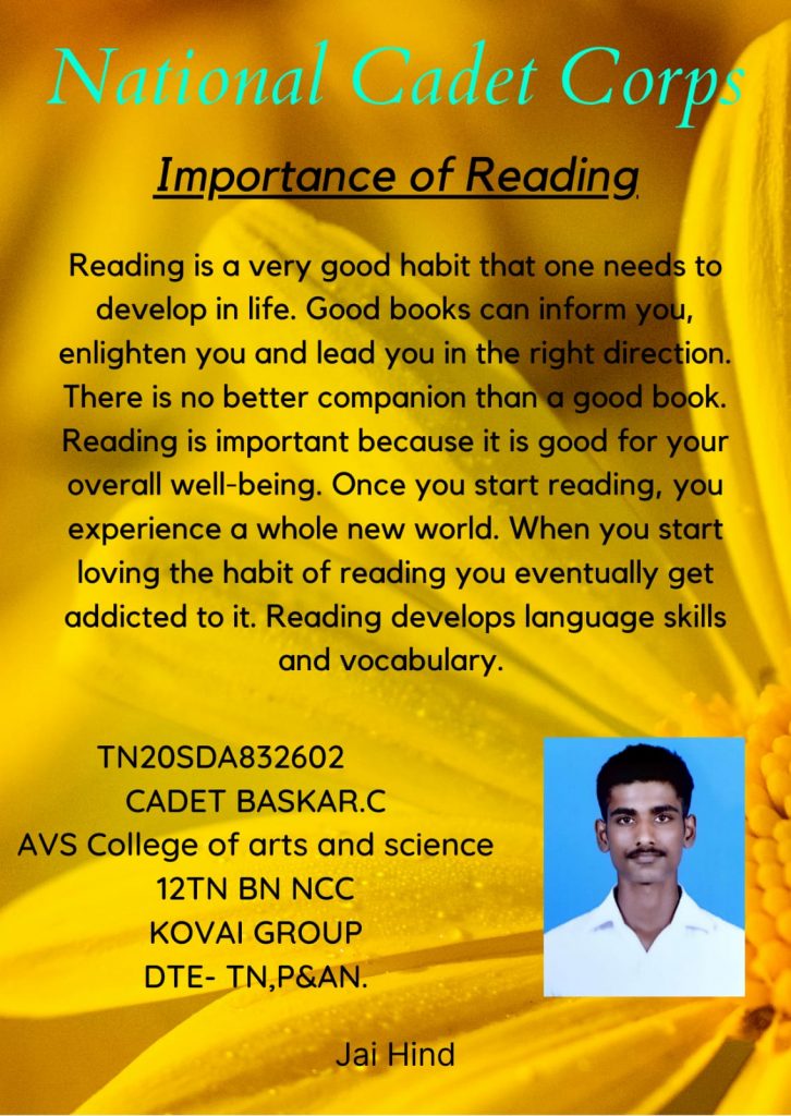 TN20SDA832602 CADET BASKAR.C AVS COLLEGE OF ARTS AND SCIENCE, SALEM TN 12 BN NCC KOVAI GROUP DTE-P&AN