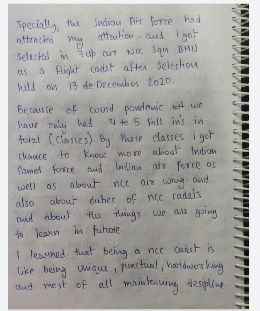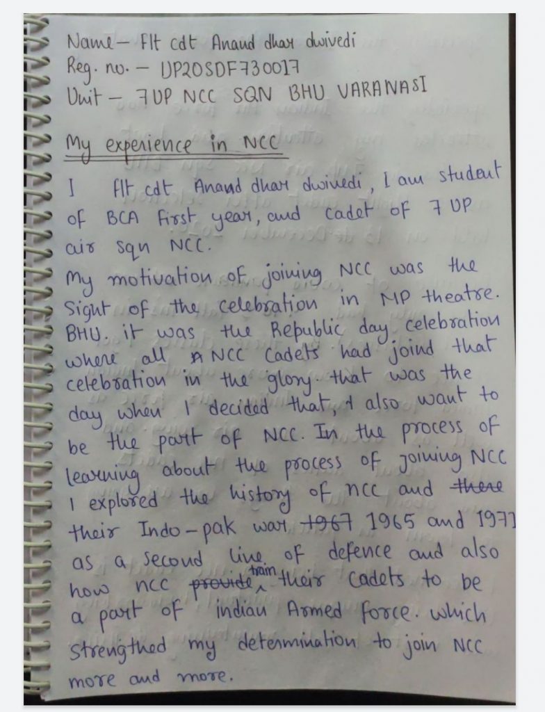 i am flt cdt Anand Dhar Dwivedi, reg.no. - UP20SDF730017, Unit name- 7UP AIR SQN NCC BHU VARANASI
