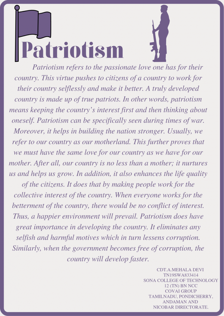 CDT.A.MEHALA DEVI TN19SWA833414 SONA COLLEGE OF TECHNOLOGY 12 (TN) BN NCC COVAI GROUP TAMILNADU, PONDICHERRY, ANDAMAN AND NICOBAR DIRECTORATE.