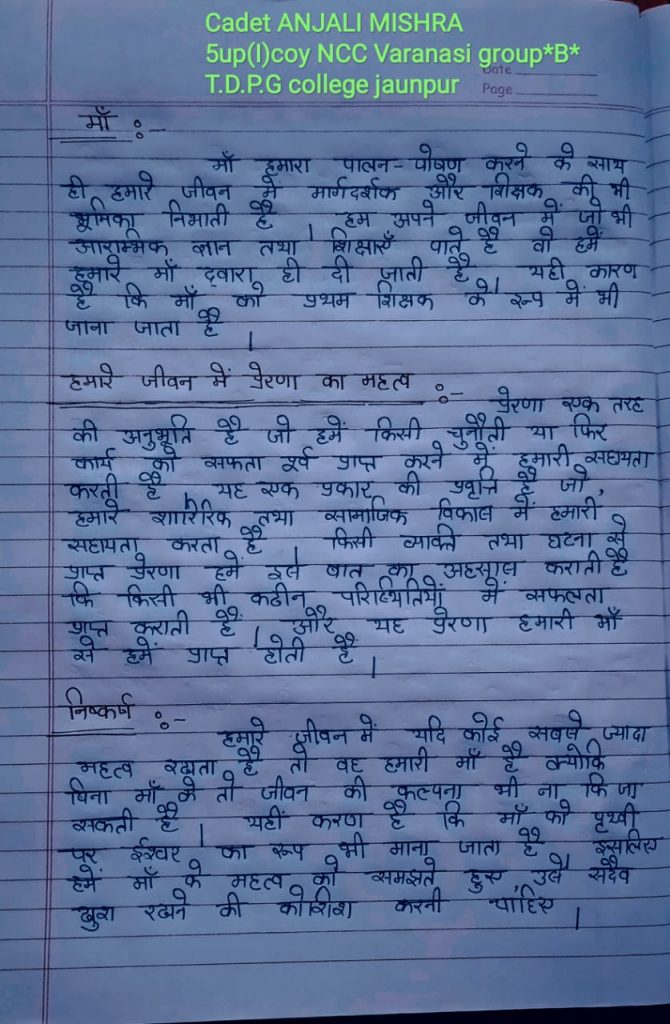 Cdt anjli mishra 5up (i) coy ncc jaunpur varansi B group Td pg collage jaunpur