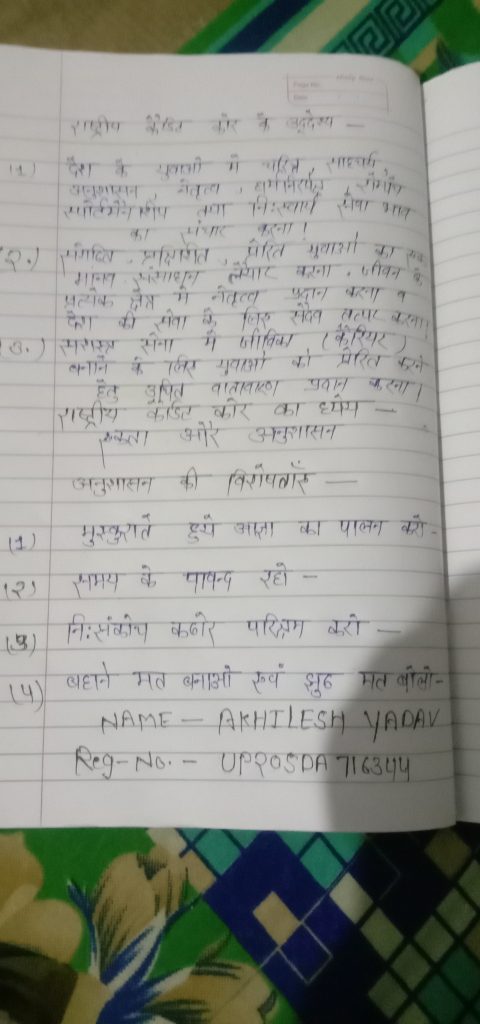 KA/18/SD/N/104058 PO CADET UDAY KUMAR.K 1 KAR NAVAL UNIT BANGLORE ‘A’ GROUP KARNATAKA AND GOA DIRECTORATE ENROLLED TO LBS COLLEGE STUDYING IN ST.FRANCIS DE-SALES COLLEGE