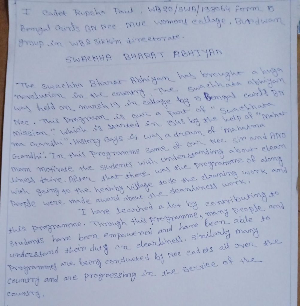 Name-Rupsha Paul Reg- WB20/SWA/193064 Rank- cdt BN-5 Bengal Girls BN Ncc Group- HQ Burdwan Dte- WB&Sikkim