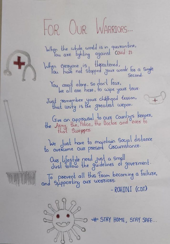 CDT.More Rohini Hitendra 48 mah battlion NCC dhule Ssvps art and commerce college dhule •Jingle for our Corona worriers ✌? Salute to our soldiers, doctor, cleanest man, police etc .