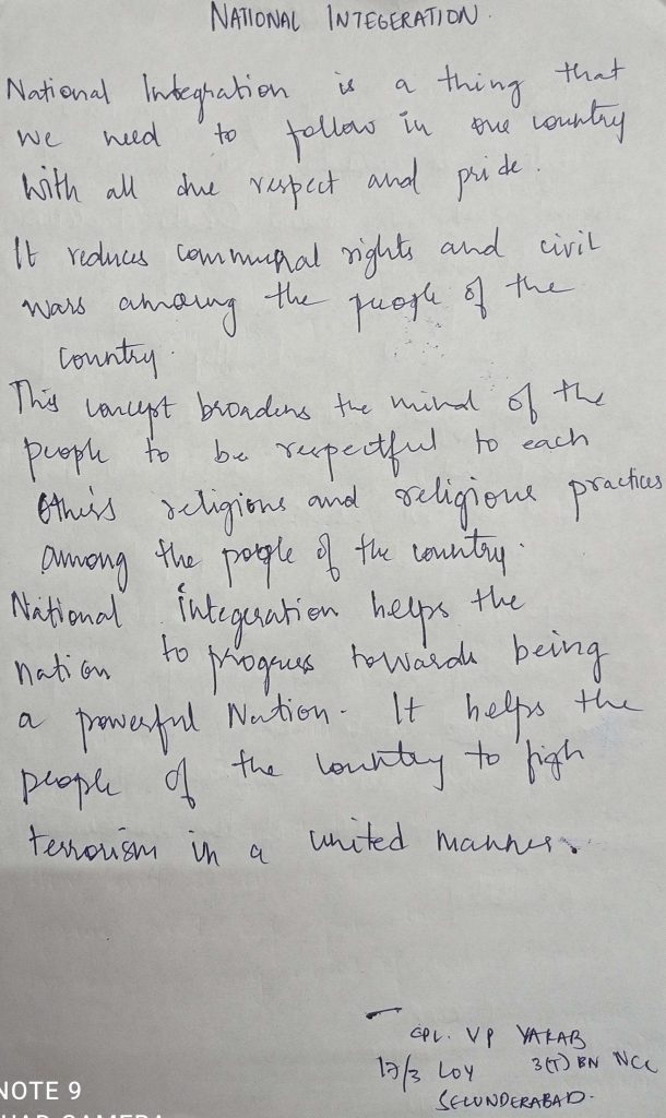 CADET: JEGAN.S TN 19 SDA 832609 AVS COLLEGE OF ARTS AND SCIENCE 12 TN BN NCC SALEM DTE: TN , P& AN