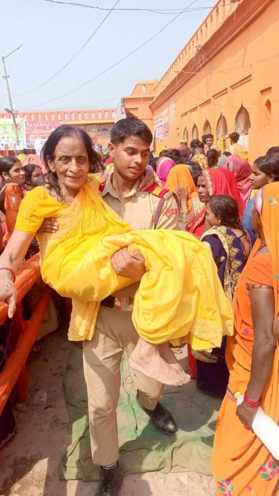 While visiting the temple, the old mother fainted and picked her up and got her NCC cadet Shubham Yadav visited the temple.