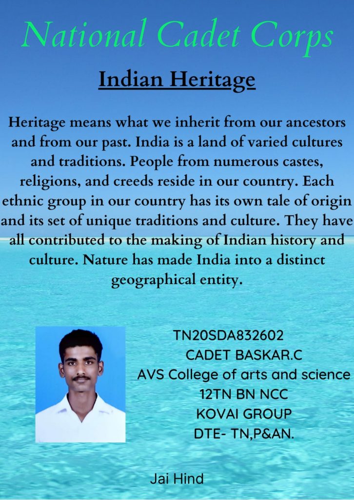 TN20SDA832602 CADET BASKAR.C AVS COLLEGE OF ARTS AND SCIENCE, SALEM TN12 BN NCC KOVAI GROUP DTE-P&AN
