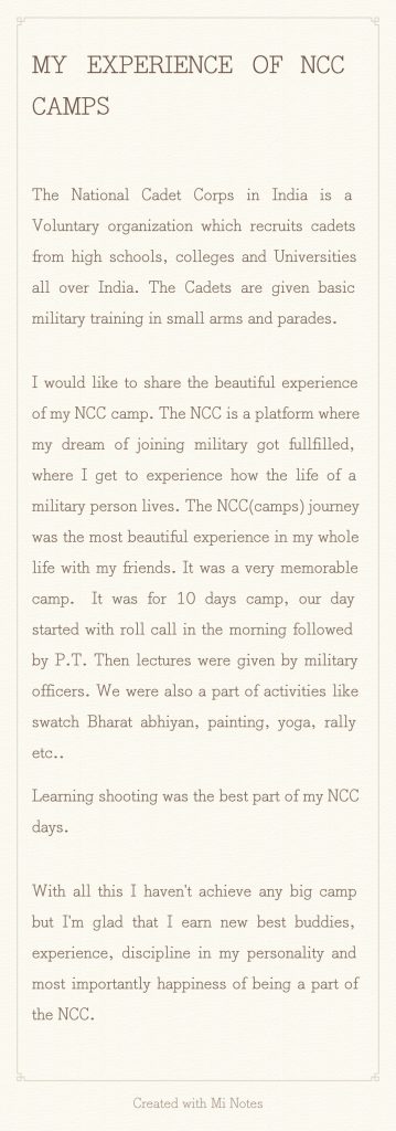 poetry on indian army from cadet kanchan 22 UP Girls BN' NCC R.G.P.G.College Meerut
