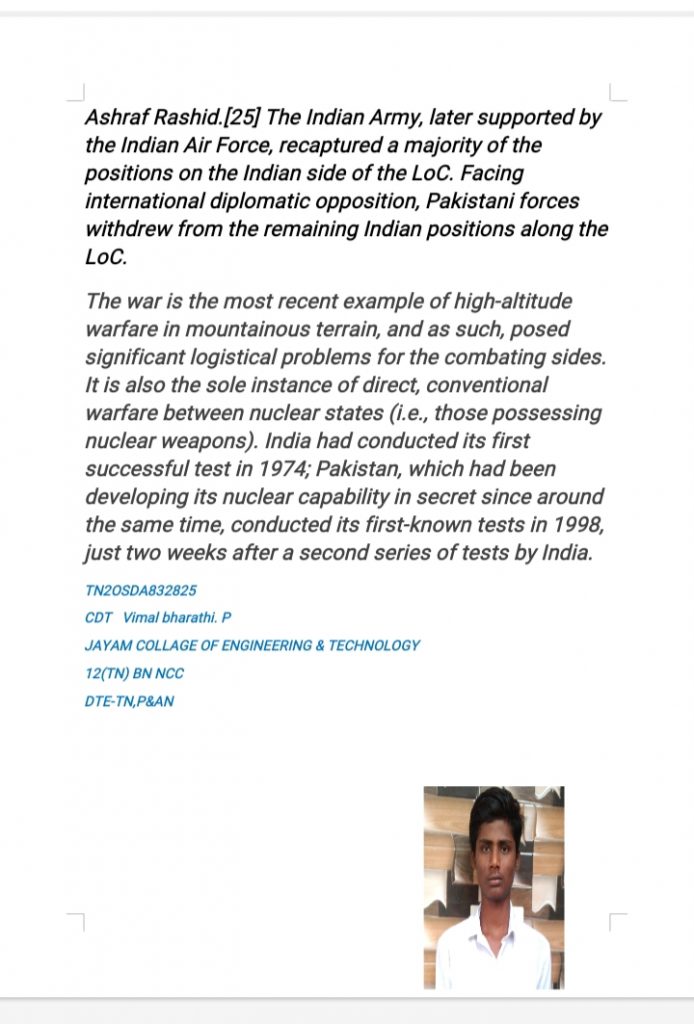 CADET: JEGAN.S TN 19 SDA 832609 AVS CAS SALEM 12 TN BN NCC SALEM DTE: TN , P & AN