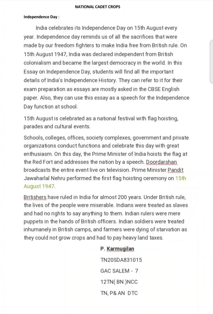 TN20SDA832201 CDT. ADITH KRISHNAN M K.S.Rangasamy College of Technology, Tiruchengode 12 TN BN NCC, SALEM Coimbatore group