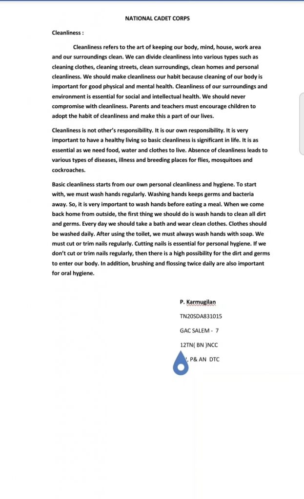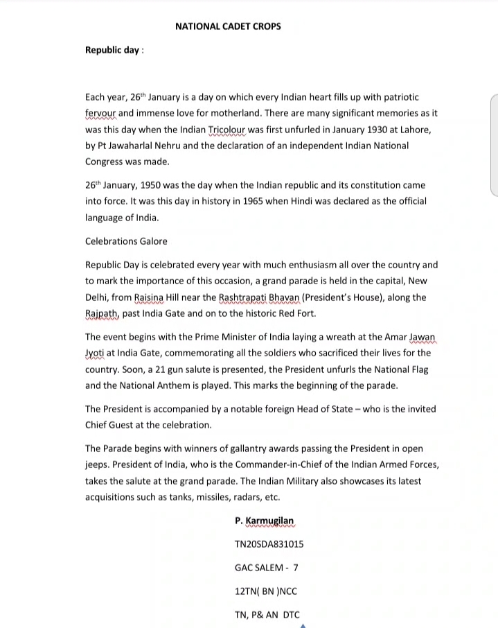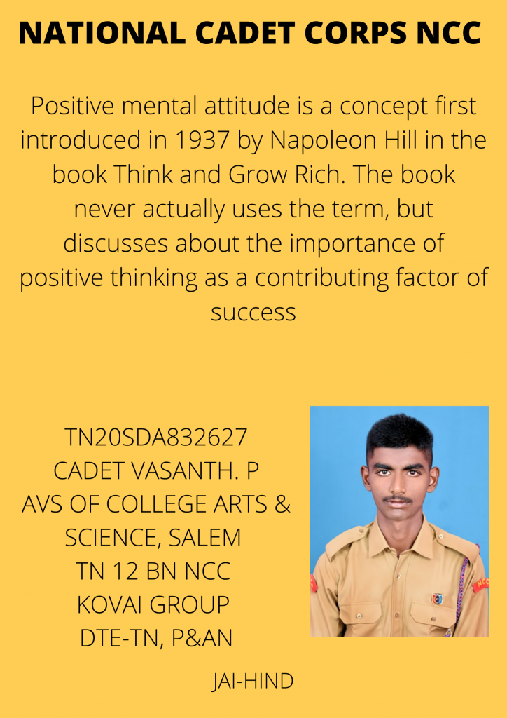 TN/20/SDA/832627 CDT:VASANTH.P AVS COLLEGE OF ARTS AND SCIENCE 7/12 ,COY 12 (TN) BN NCC KOVAI GROUP DTE:TN,P&AN