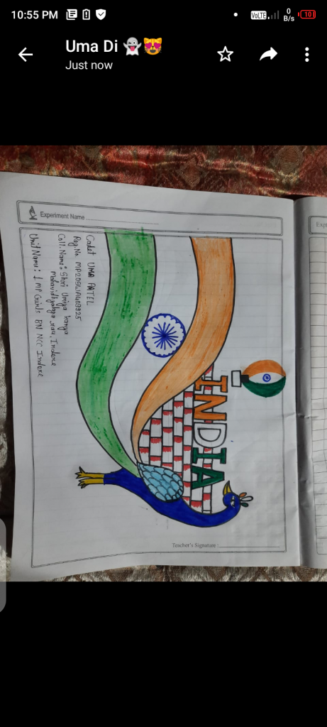 I remember how i came to home just for holi & stayed home for 1 year. NCC taught me discipline in regardance of my work. CADET ISHA SONI REG NO. - MP19SWA409887 SHRI UMIYA KANYA MAHAVIDHYALYA 1 MP GIRLS BN NCC, INDORE JAI HIND ??