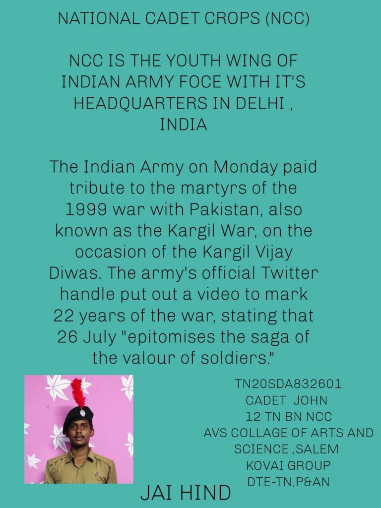 Name: CDT. P.SIVASELVAM Reg.No: TN20SDA832216 College: KSR TECH Unit: 12 TN BN NCC SALEM Group: Coimbatore