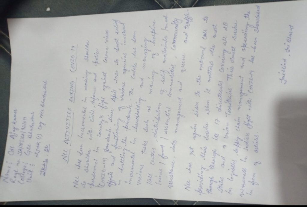 Name- Bandish Sanjay Patil Regiment no.- MAH/SDA/20/404312 College name- College of Agriculture, Dhule