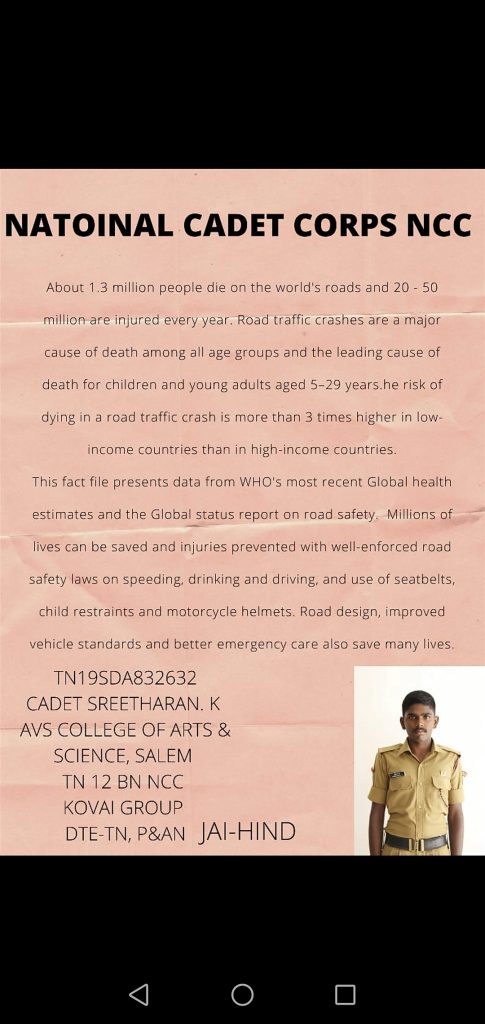 TN20SWA833212 CADET.R.E.PREETHI 12(TN)BN,NCC SRI SARADA COLLEGE FOR WOMEN (AUTONOMOUS)SALEM-16